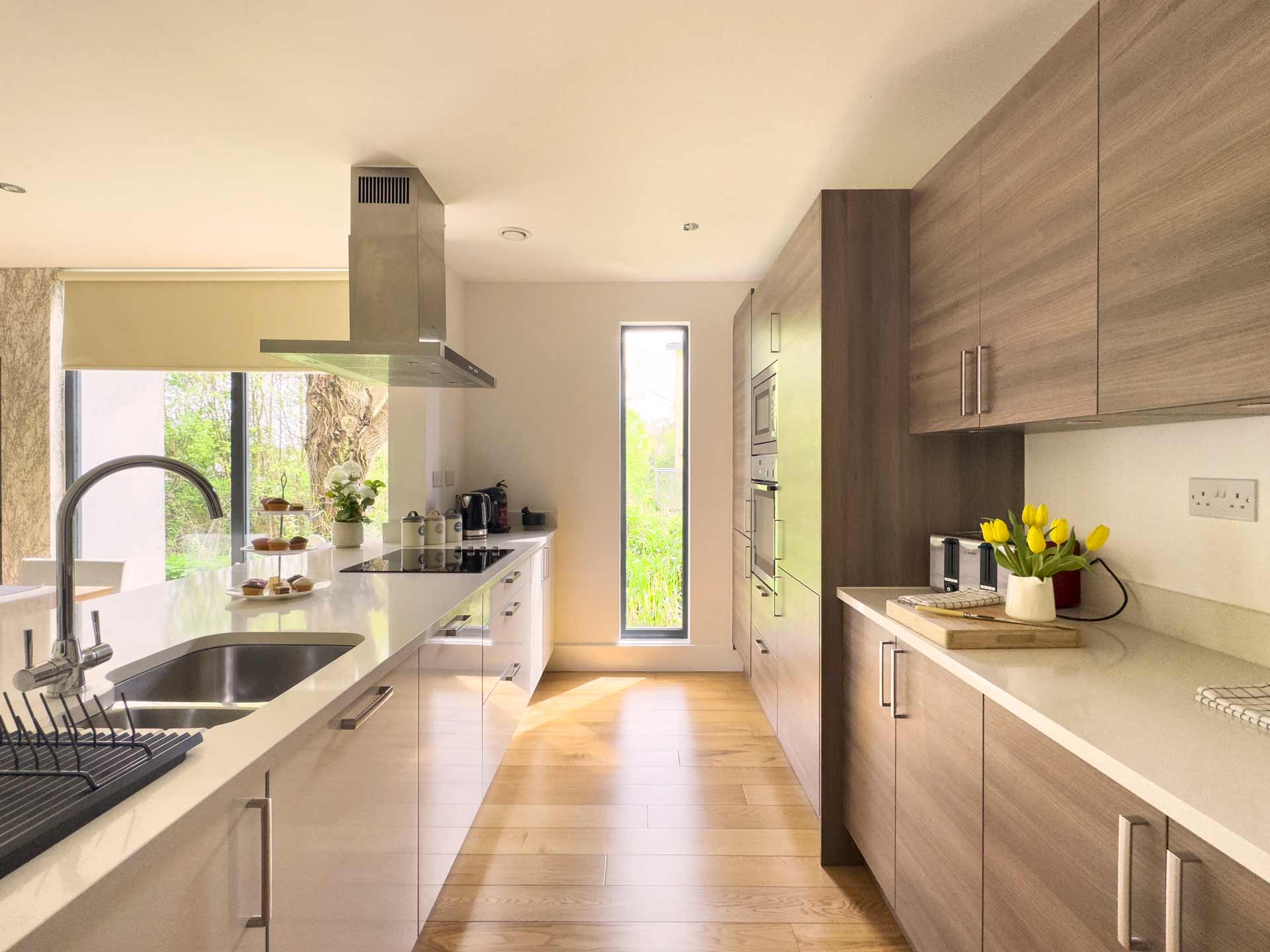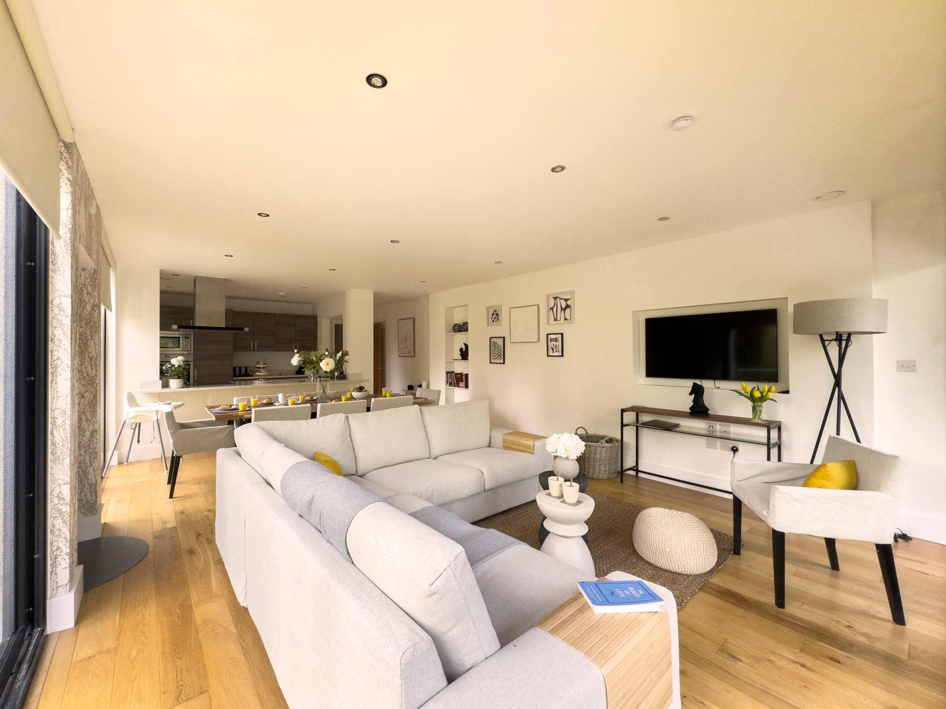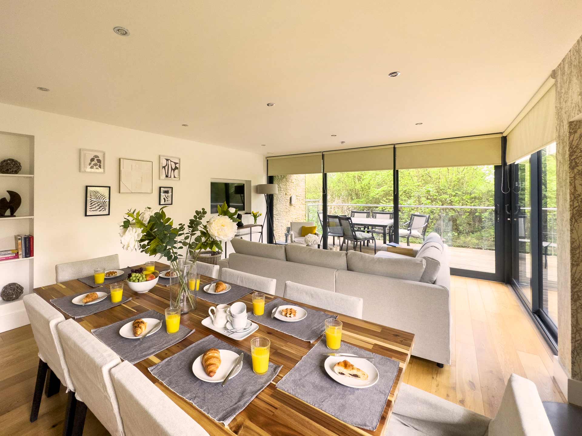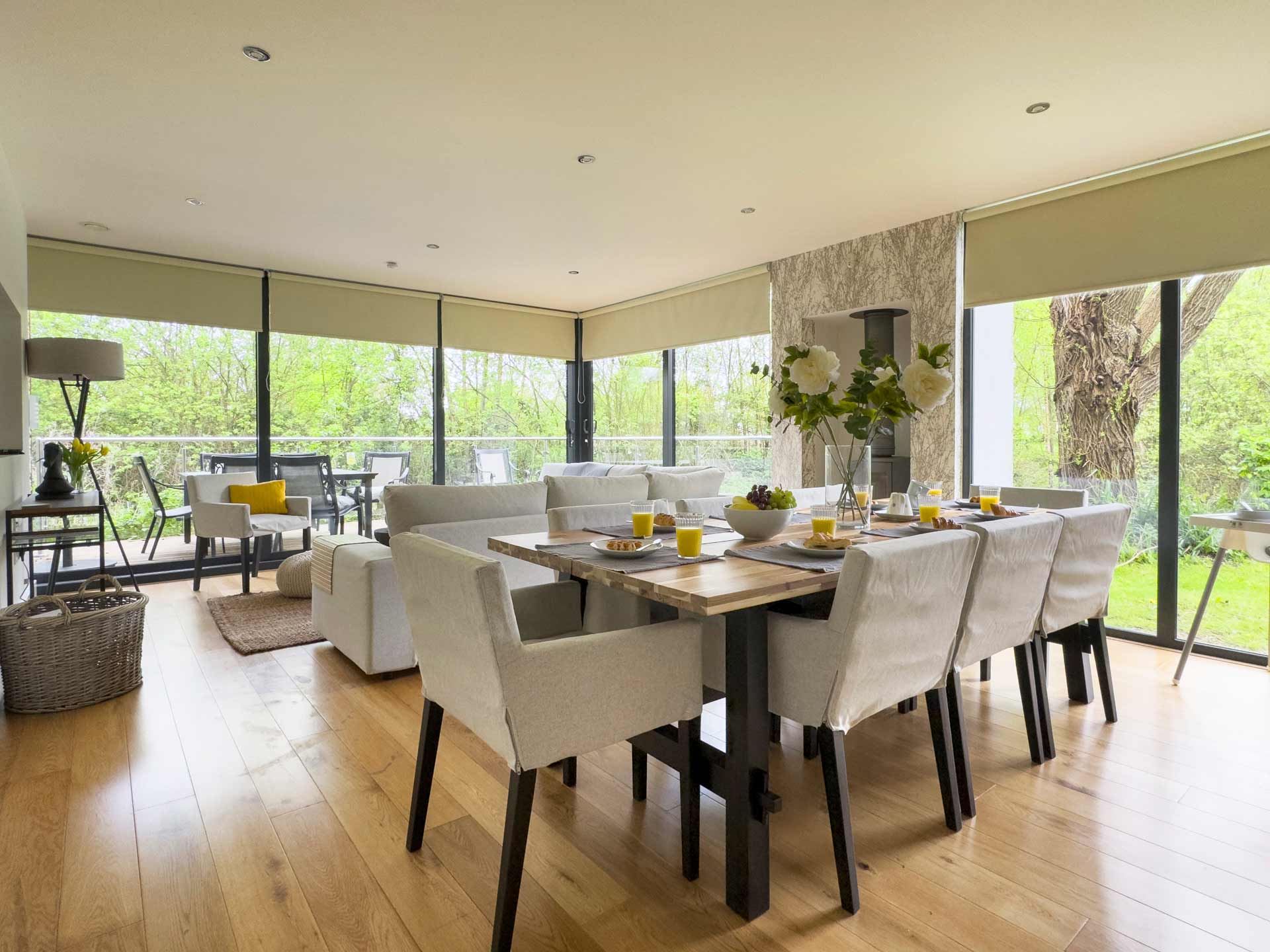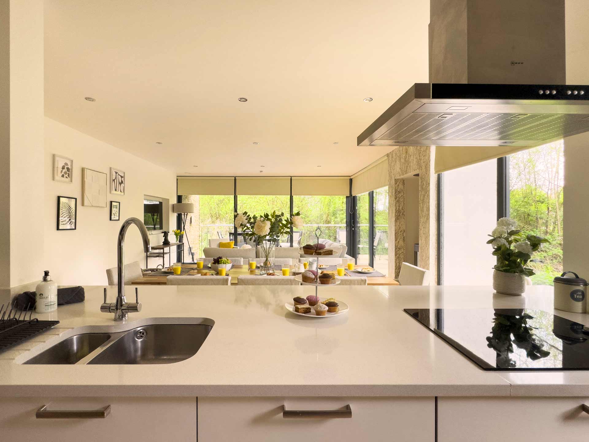 It combines the tranquillity of the beautiful Cotswold countryside with the very best of contemporary design. Offering full height, floor to ceiling windows overlooking the water garden.