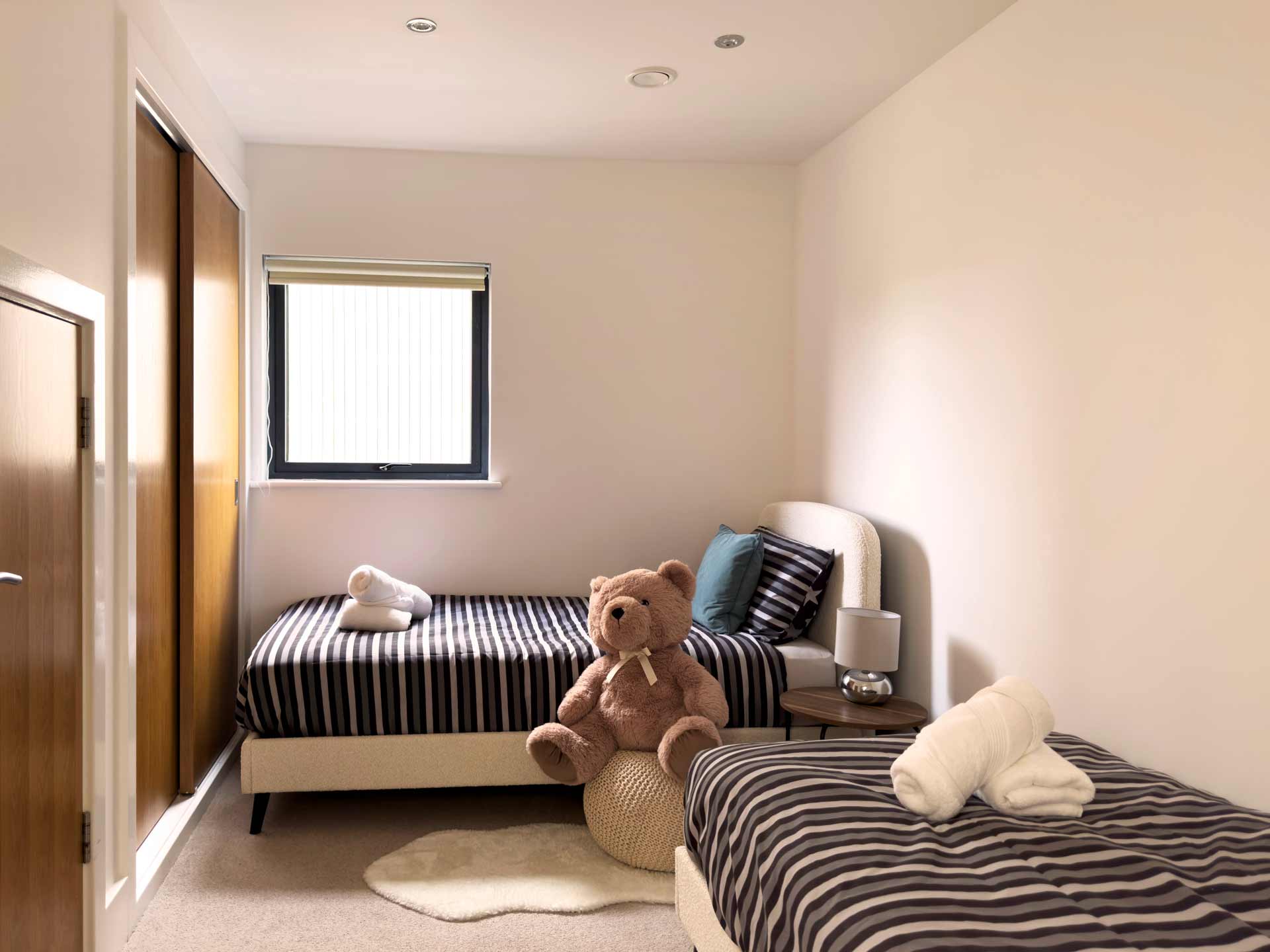 Cot (Cuggl Deluxe, Size L:104cm, W:60cm) – bottom sheet included at an additional charge of £15 (quilt pillows are not supplied for health and safety reasons)